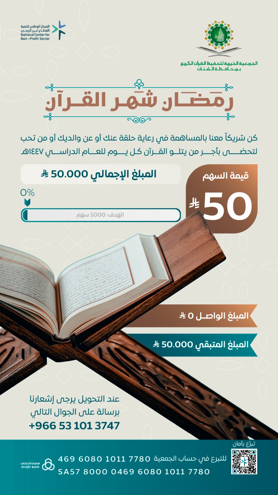 ⬅️ حساب الجمعية 💳 SA5780000469608010117780 🕌 جمعية تحفيظ القرآن بالشنان.